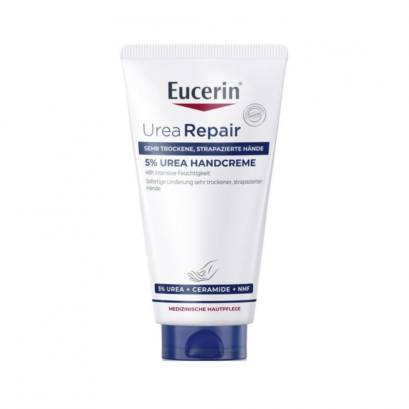 Eucerin UreaRepair 5% Urea Handcreme - интенсивный крем для очень сухих и поврежденных рук с 5% мочевины. Быстро впитывается, увлажняет кожу, снимает раздражение, укрепляет кожный барьер. Подходит для терапии псориаза и диабета. Без отдушек и микропластика.