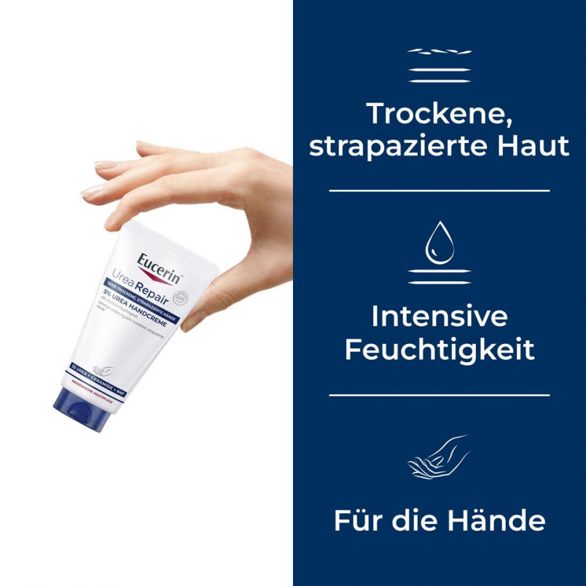 Eucerin® UreaRepair 5% Urea Handcreme – intensive Pflege für sehr trockene und strapazierte Hände - Jetzt 20% sparen mit Code "eucerin20"