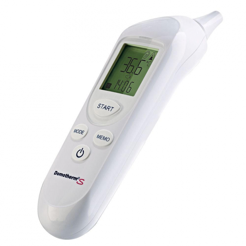 Инфракрасный ушной термометр Domotherm® S для быстрого и точного измерения температуры тела за 1 секунду. Оснащен подсвечиваемым дисплеем с цветовой индикацией при лихорадке, функцией хранения последних 12 измерений с датой и временем, отключаемым звуковым сигналом и возможностью измерения поверхностных температур. В комплекте 40 гигиенических защитных насадок.