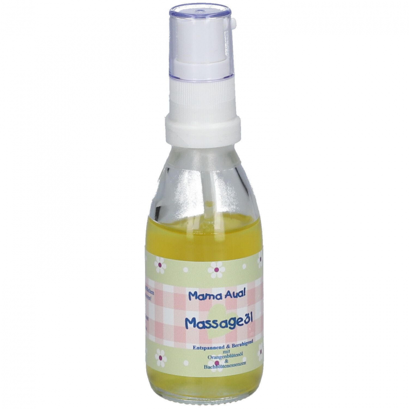 Органическое массажное масло Mama Aua! с эссенциями цветов Баха и маслом цветков апельсина для успокаивающего массажа. Не содержит парфюма, красителей и консервантов. Подходит для расслабляющего массажа тела.