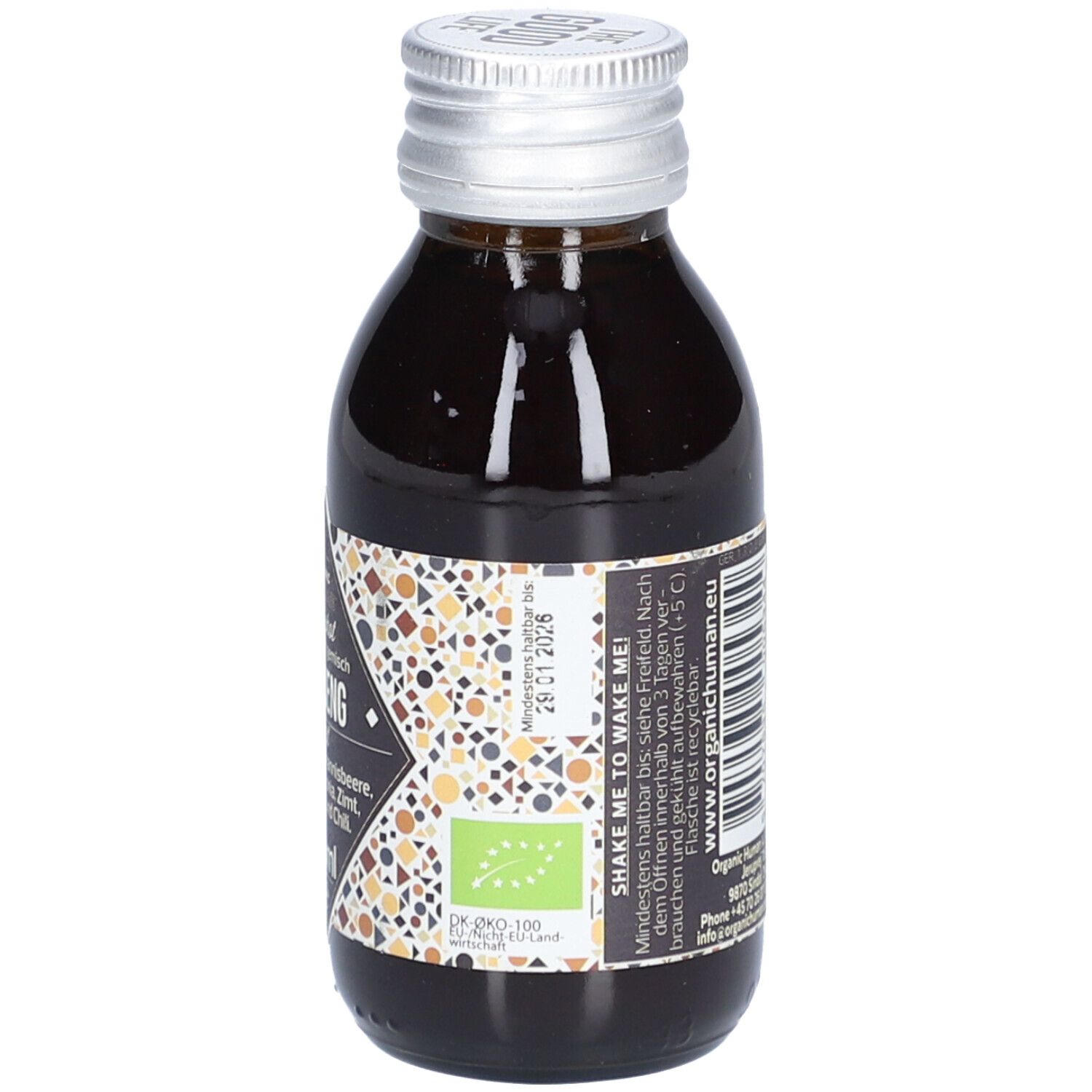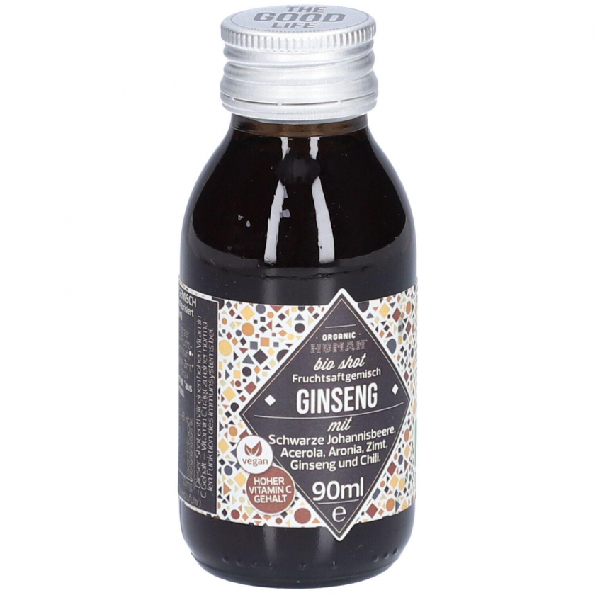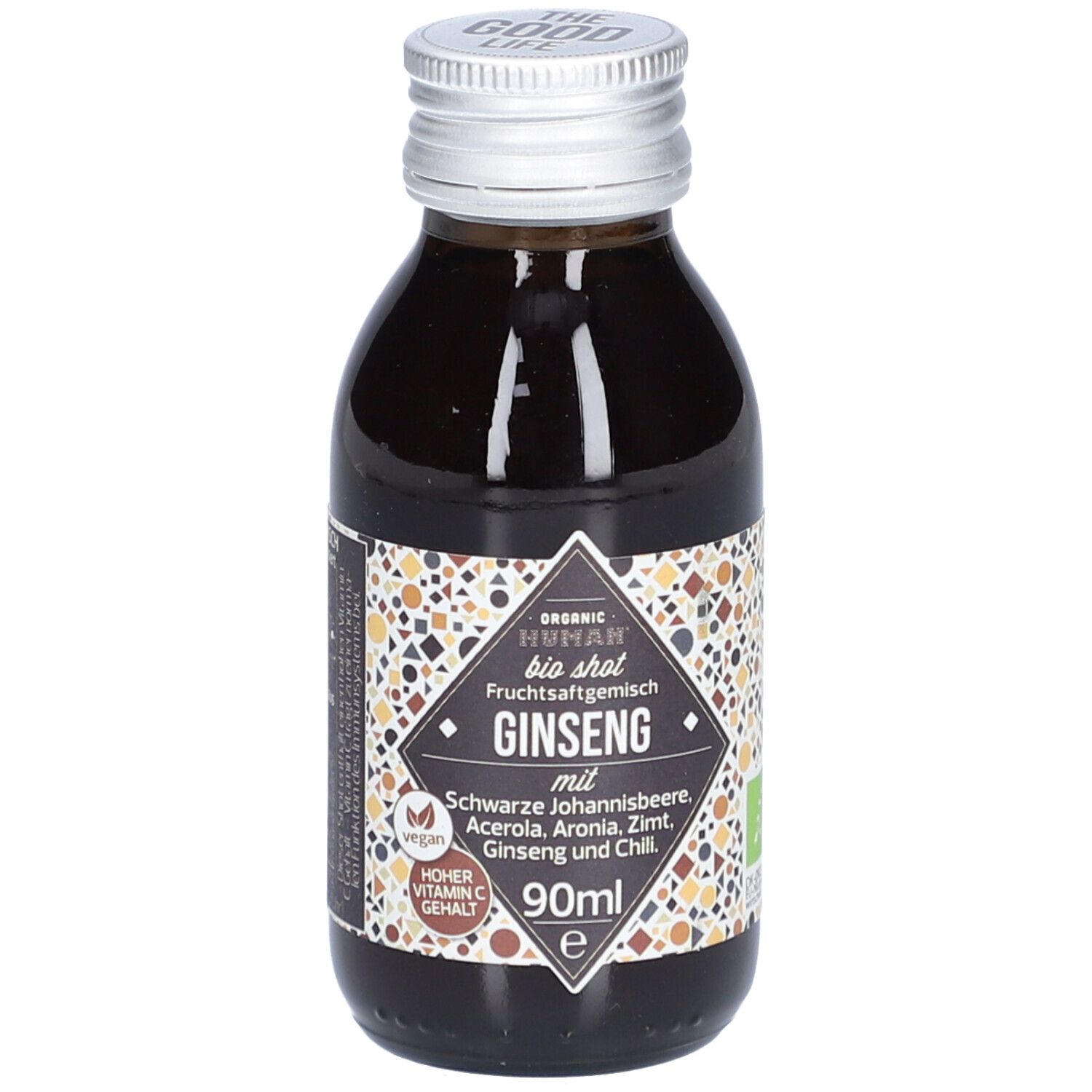 Organic Human Shot Ginseng Bio - органический фруктовый сок-шот с женьшенем для естественного энергетического подъема. Веганский продукт из био-ингредиентов: яблочный сок, черная смородина, арония, корица, чили, мята и женьшень. Идеально для быстрого повышения энергии в течение дня.
