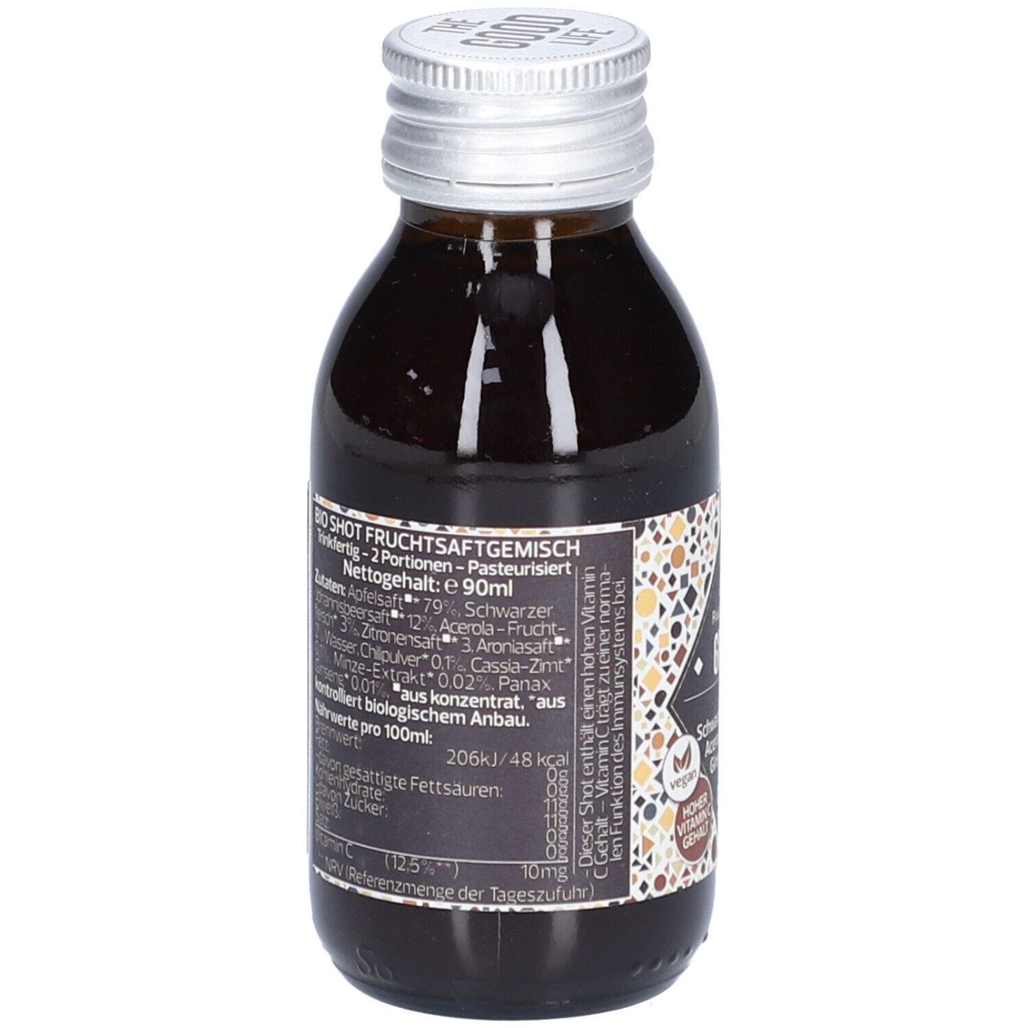 Состав: Яблочный сок* (68%), сок черной смородины* (21%), сок аронии* (10,75%), порошок чили* (0,1%), корица кассия* (0,1%), женьшень* (Panax Ginseng) (0,03%), экстракт мяты* (0,02%). *из контролируемого органического земледелия