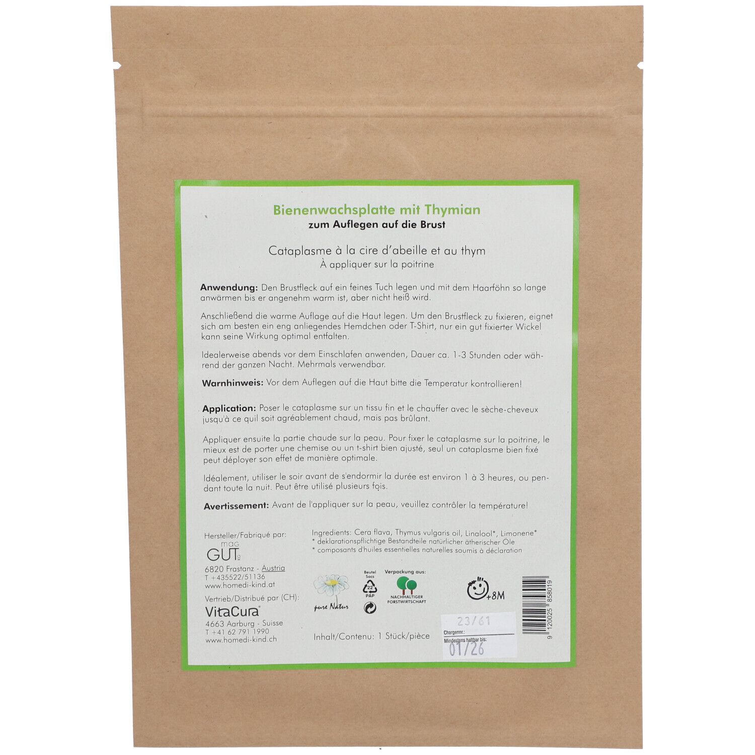 Традиционный компресс из неотбеленного пчелиного воска и хлопка с эфирным маслом тимьяна для облегчения симптомов простуды. Нагревается и накладывается на грудь, многоразовый.