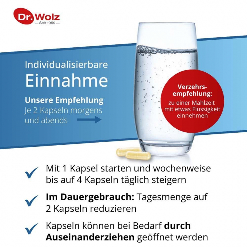 Способ применения: Прием 4 капсул в день во время еды или распределенных в течение дня с жидкостью. Детям 2-10 лет - половина дозы. При длительном применении можно снизить до 2 капсул в день