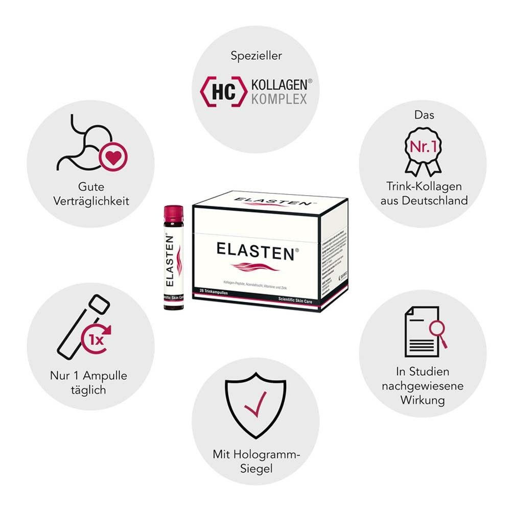 ELASTEN® Kollagen Trinkampullen für schöne Haut – das studiengeprüfte Original, mit Acerola, Vitamin C, Zink, Biotin