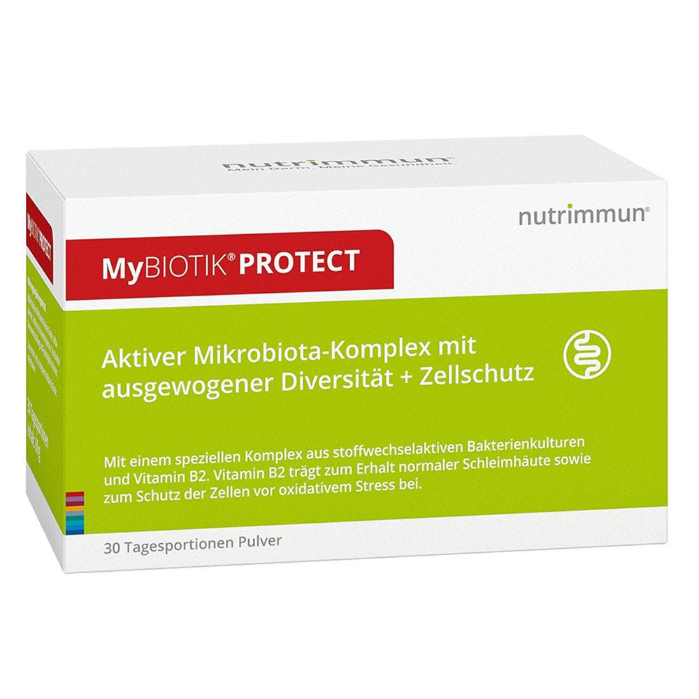 MyBIOTIK® PROTECT - пищевая добавка с комплексом из 11 метаболически активных бактериальных культур и витамина B2 для поддержания здоровья кишечника, восстановления микрофлоры после антибиотиков и защиты клеток от окислительного стресса