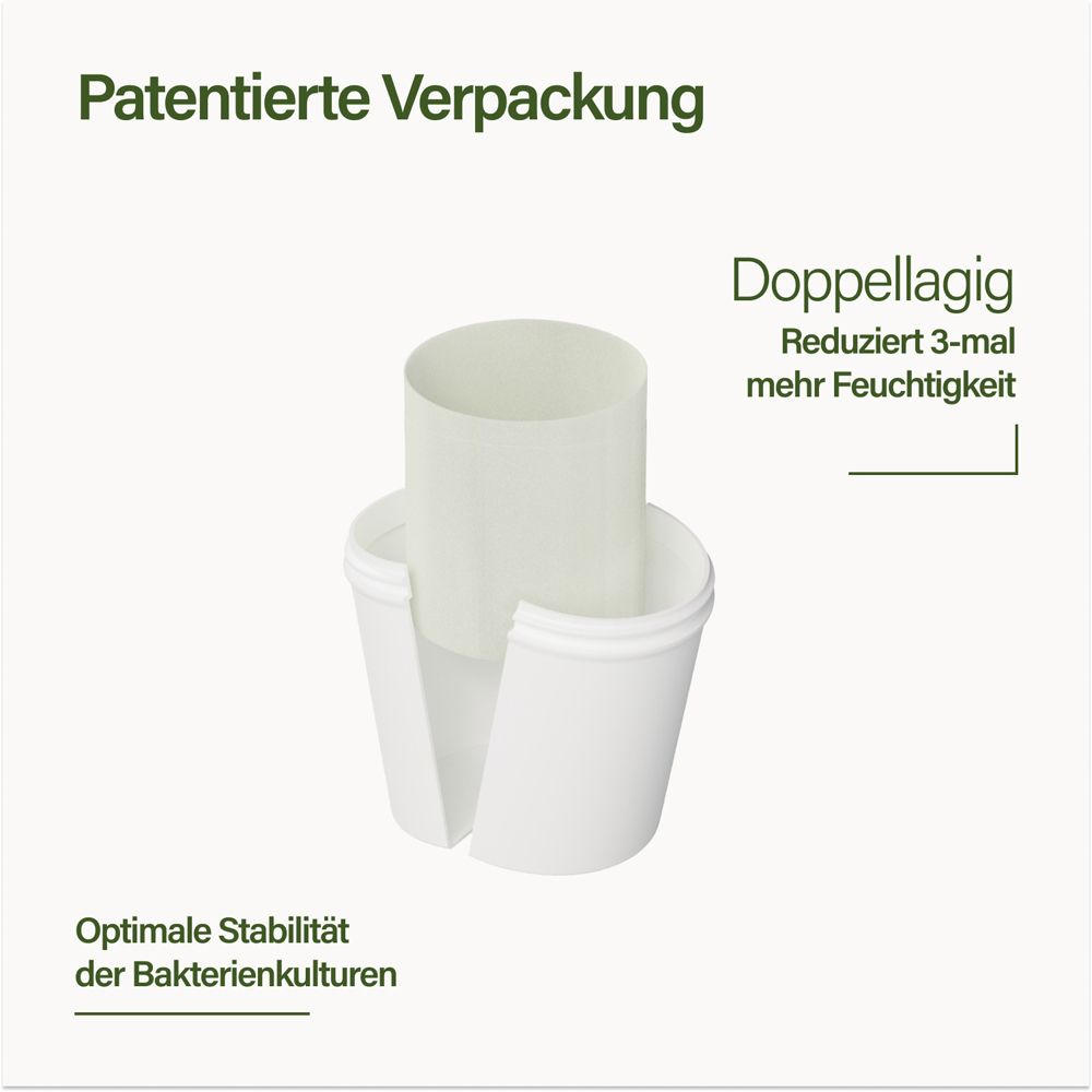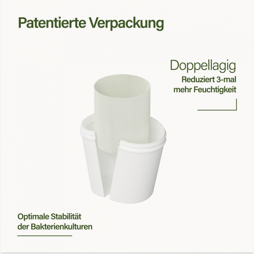 Смесь бактериальных культур (95 штаммов пробиотиков), порошок корня цикория, рибофлавин (витамин B2), экстракт корня цикория, гипромеллоза, соли магния жирных кислот пищевого качества, кукурузный крахмал, пектин, молоко