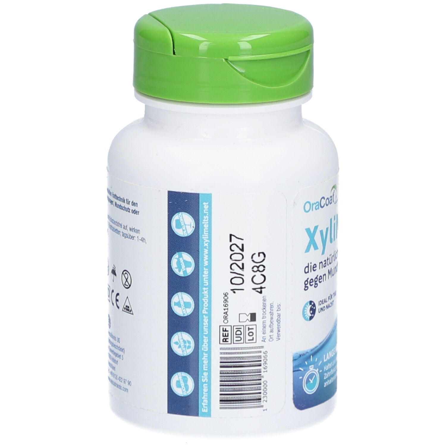 OraCoat XyliMelts - это натуральные адгезивные таблетки для борьбы с сухостью во рту. Они прикрепляются к зубу или десне и медленно растворяются в течение 4-6 часов, обеспечивая постоянное увлажнение слизистой оболочки рта. Продукт на 100% натуральный, веганский, содержит ксилит и карбонат кальция для профилактики зубного налета и кариеса.