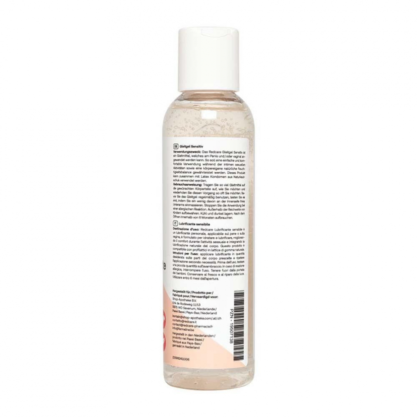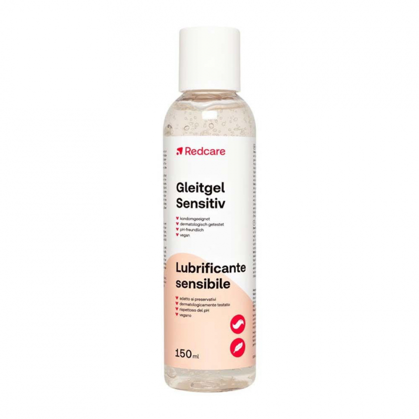 Redcare Gleitgel Sensitiv - интимный гель-лубрикант для комфорта при интимных контактах. Натуральный, безопасный, веганский продукт объемом 150 мл, подходит как для мужчин, так и для женщин. Обеспечивает естественное и приятное ощущение, поддерживает естественный баланс влажности. Перед использованием рекомендуется тест на аллергию.
