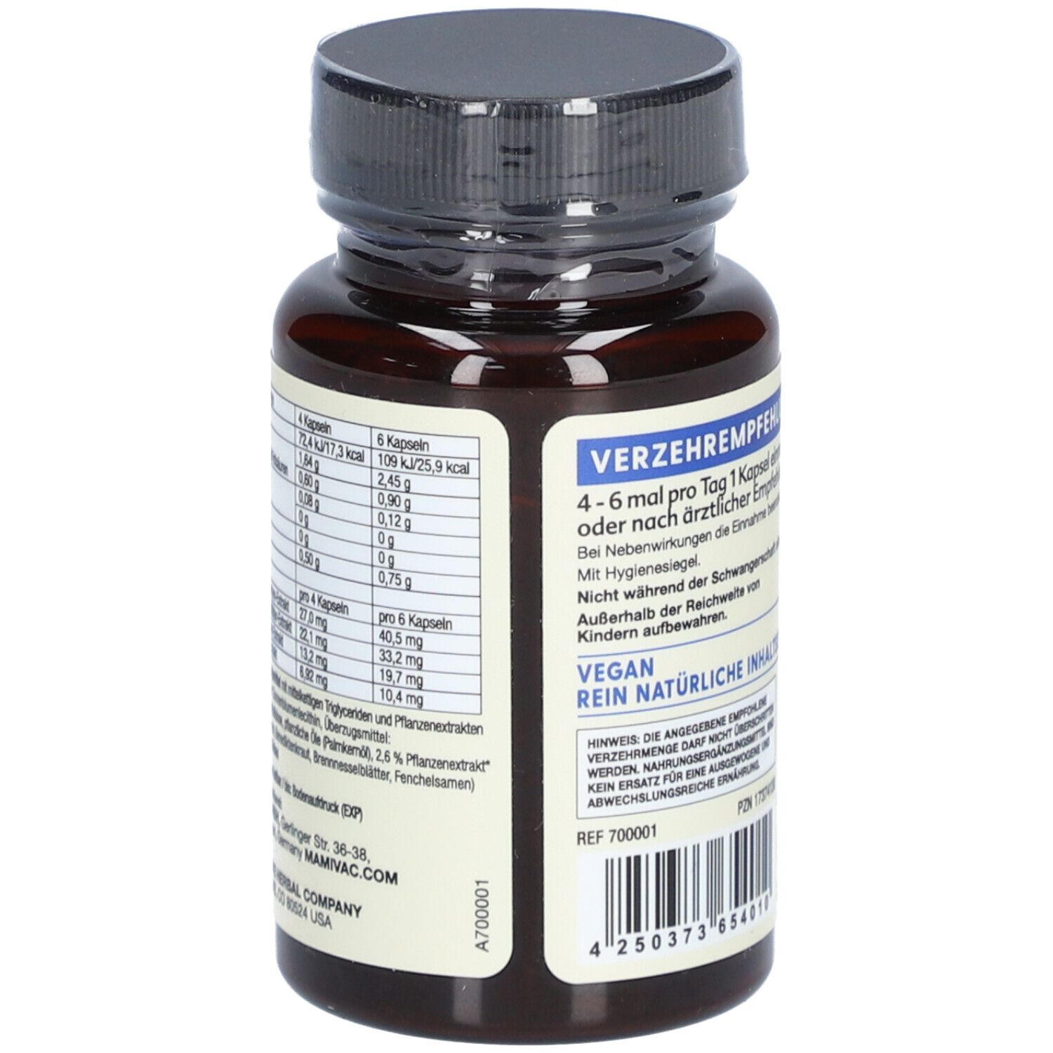 Состав: Бенедиктово семя, пажитник (бобы хельбы), листья крапивы, фенхель, эмульгатор, соевый лецитин, гидроксипропилметилцеллюлоза (оболочка), растительные масла, среднецепочечные триглицериды (из пальмоядрового/кокосового масла)