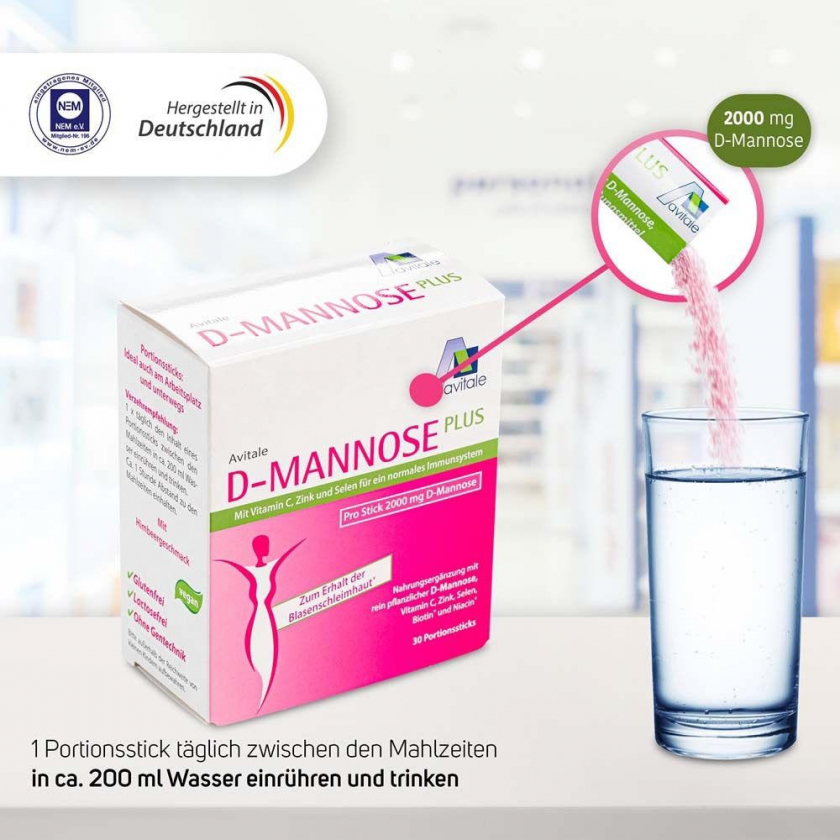 D-Mannose Plus 2000 mg Stick mit Niacin zur Erhaltung normaler Schleimhäute