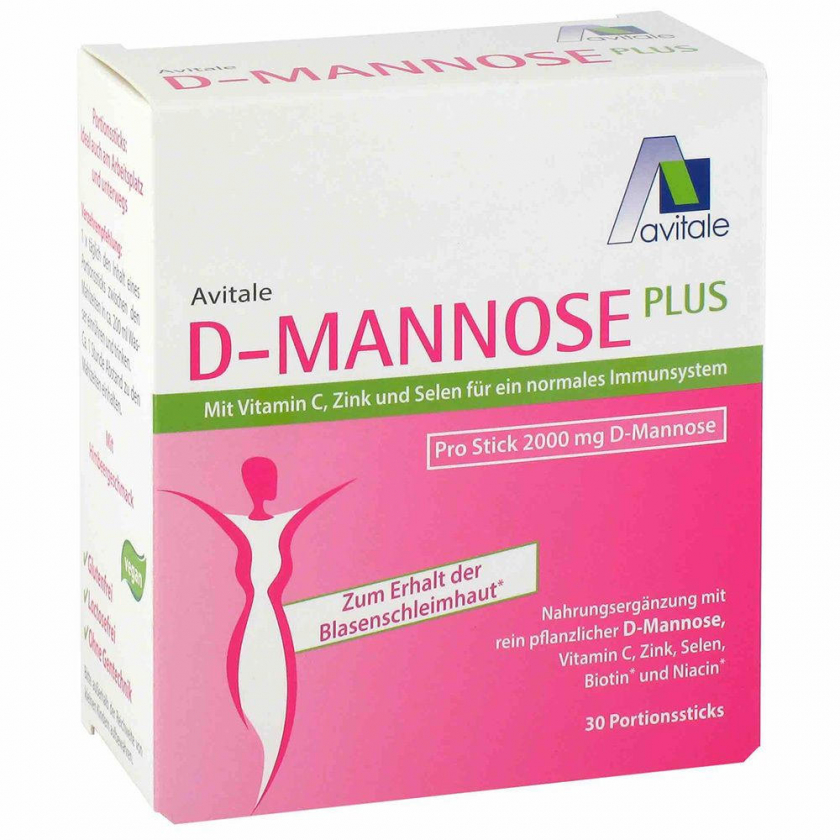Пищевая добавка D-Mannose Plus 2000 мг в удобных порционных стиках с ниацином и биотином для поддержания нормального состояния слизистых оболочек. Содержит растительную D-маннозу из кукурузы, витамин C, цинк, селен и другие полезные компоненты.