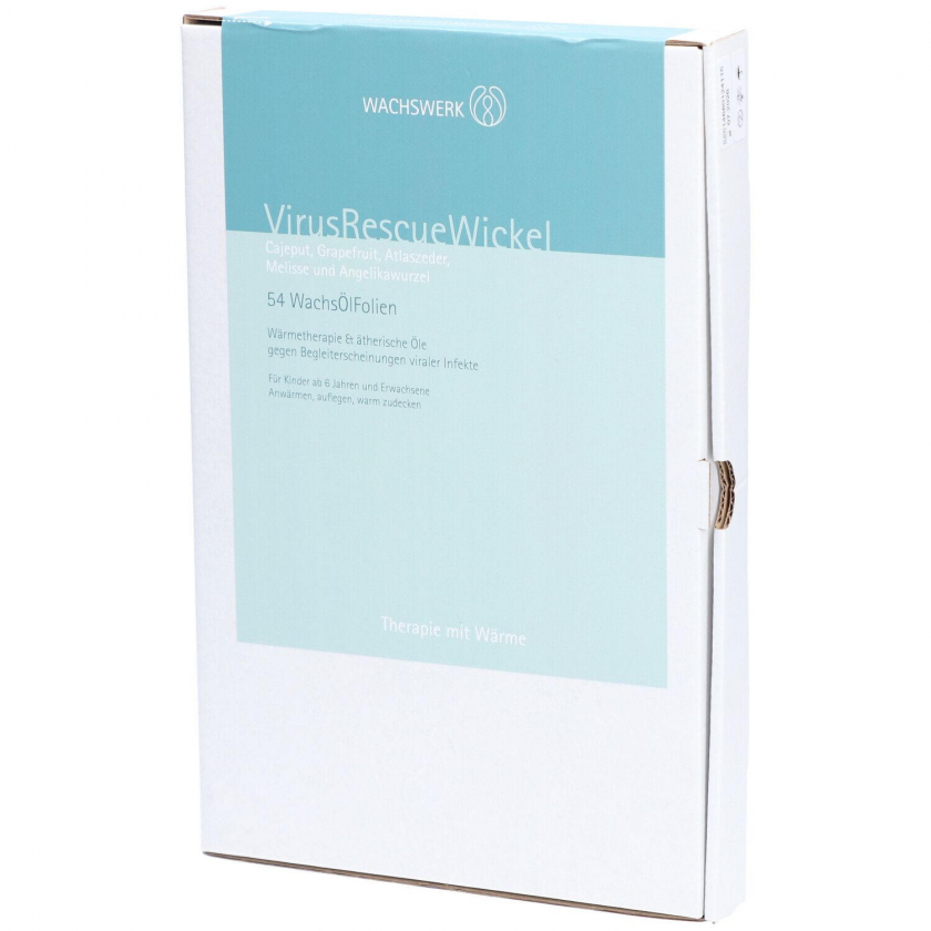 VirusRescueWickel - это согревающий компресс с эфирными маслами для облегчения симптомов вирусных инфекций. Применяется при кашле, боли в груди и для улучшения кровообращения в дыхательных путях. Подходит для взрослых и детей от 6 лет. В упаковке 54 одноразовых восково-масляных пленок размером 15x21 см.
