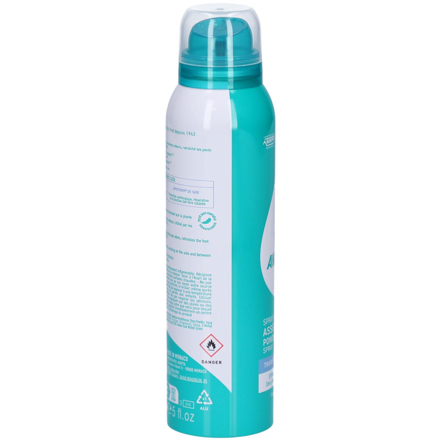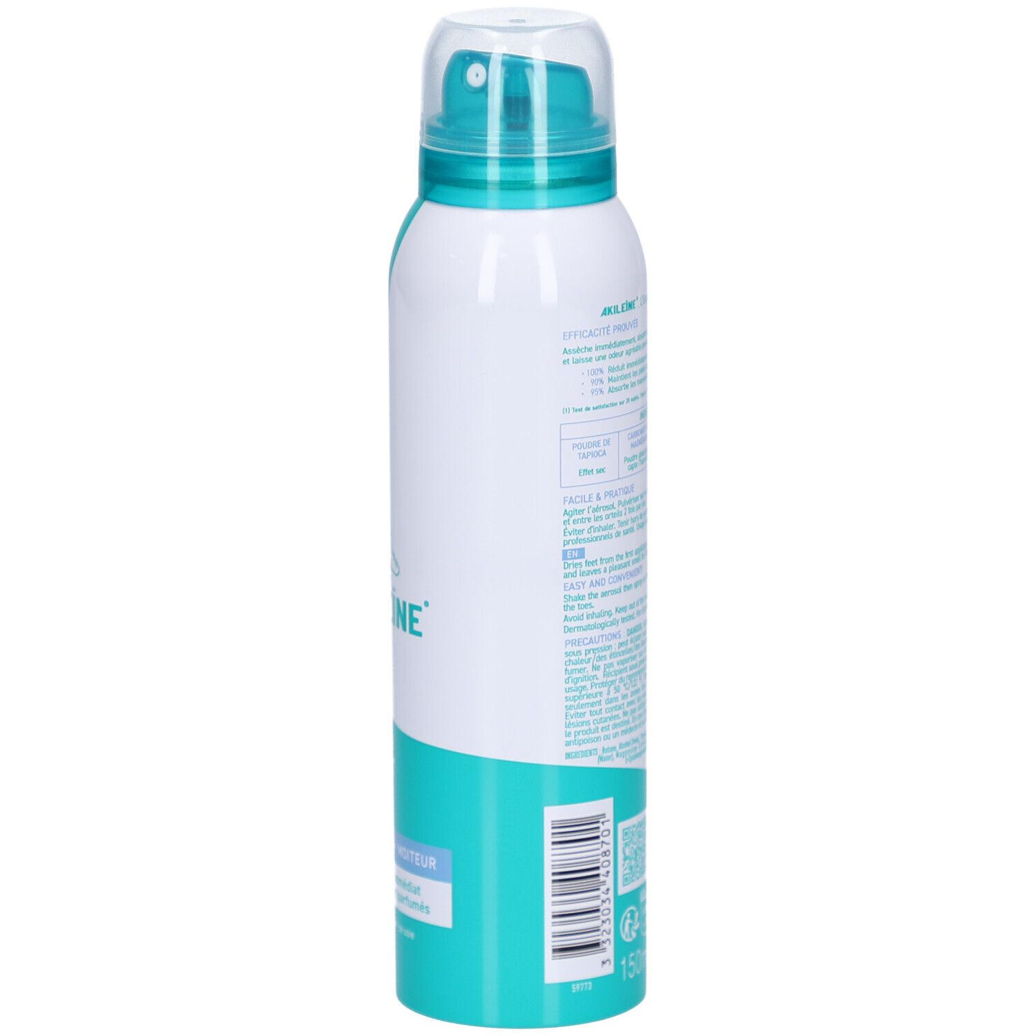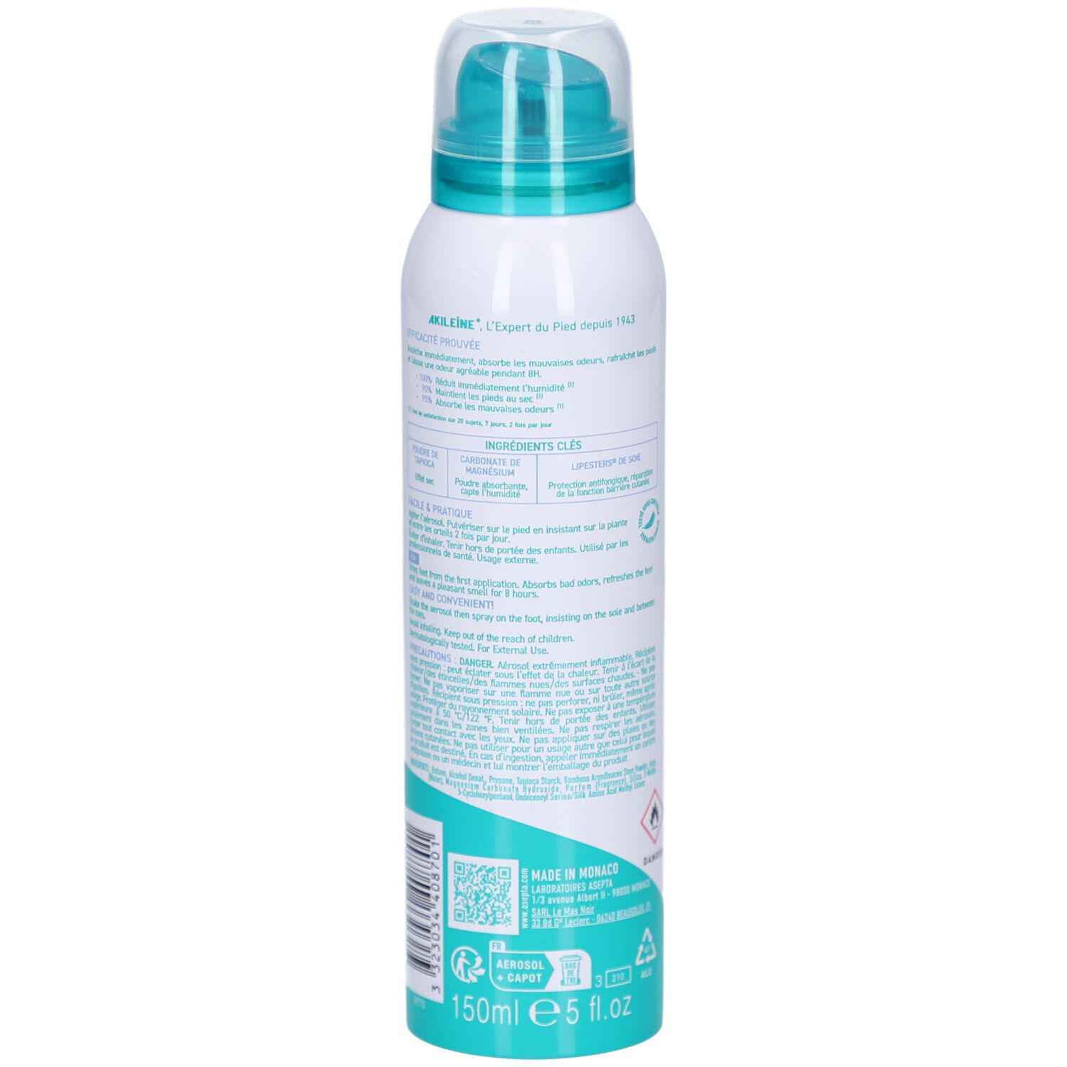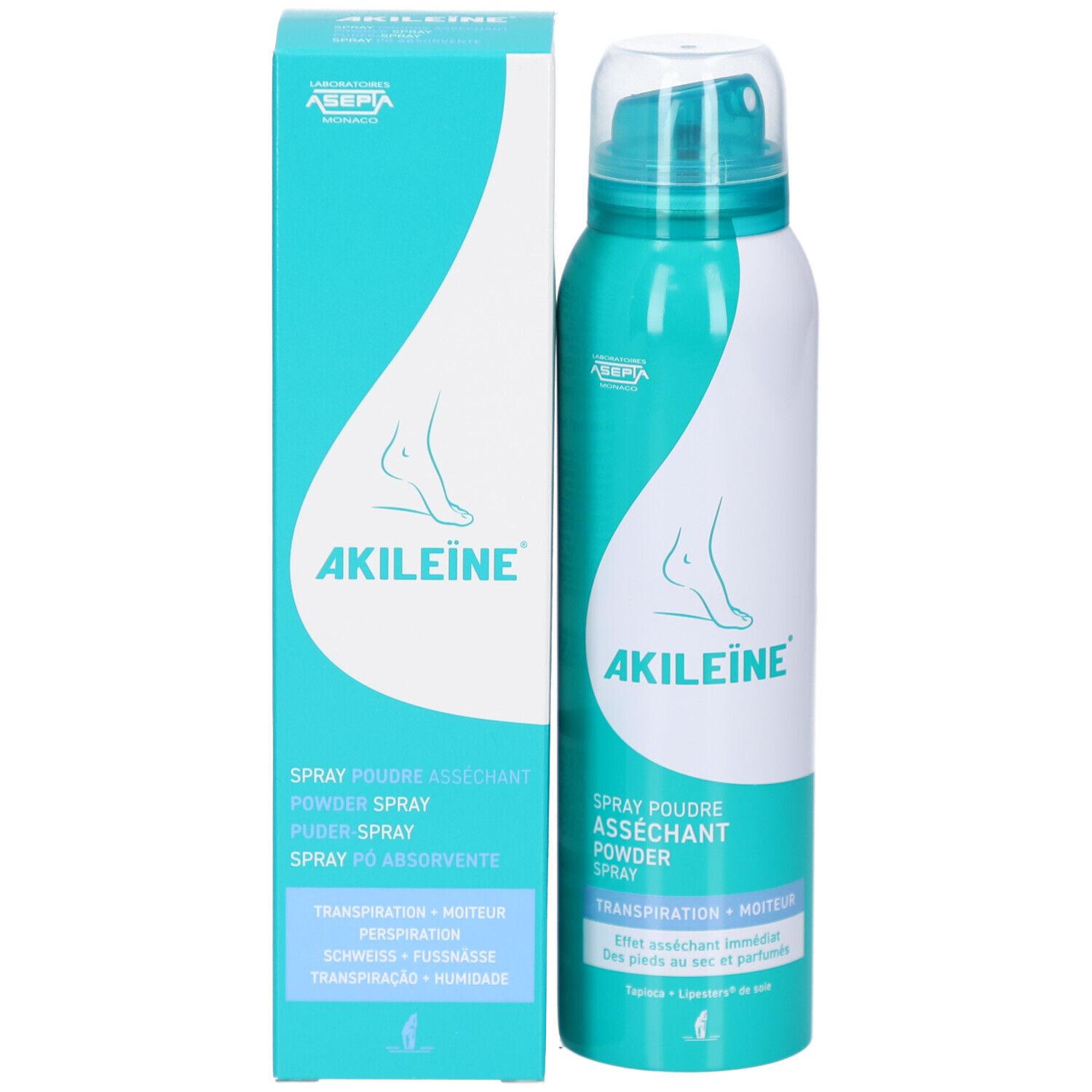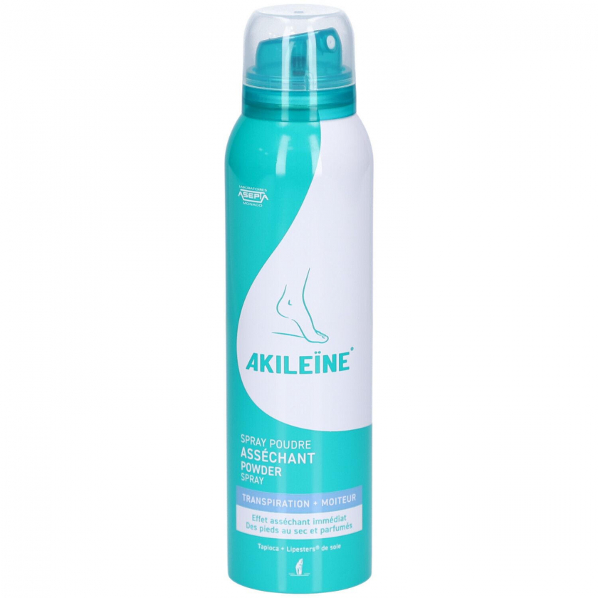 AKILEINE Fuß-Puder-Spray - антиперспирант пудра-спрей для ног, регулирующий потоотделение и предотвращающий грибковые инфекции. Содержит запатентованный противогрибковый компонент Seiden-Lipesters®, создает защитную пленку, поглощает влагу и обеспечивает комфорт для ног.