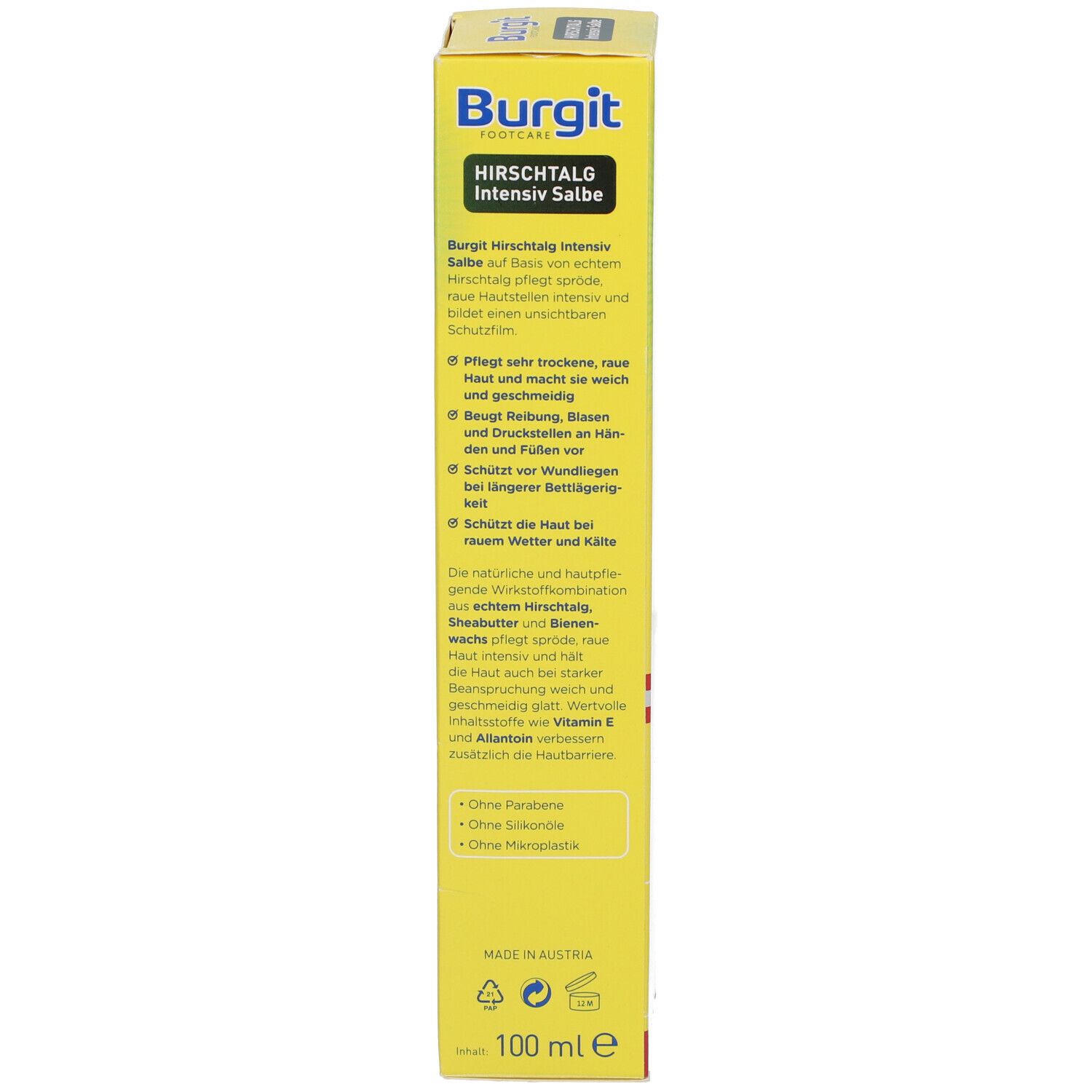 Интенсивная мазь Burgit с оленьим жиром для защиты и ухода за кожей стоп. Предотвращает образование мозолей, ухаживает за огрубевшей кожей, содержит натуральные компоненты: олений жир, масло ши и витамин Е. Подходит для профилактического использования и ежедневного ухода.
