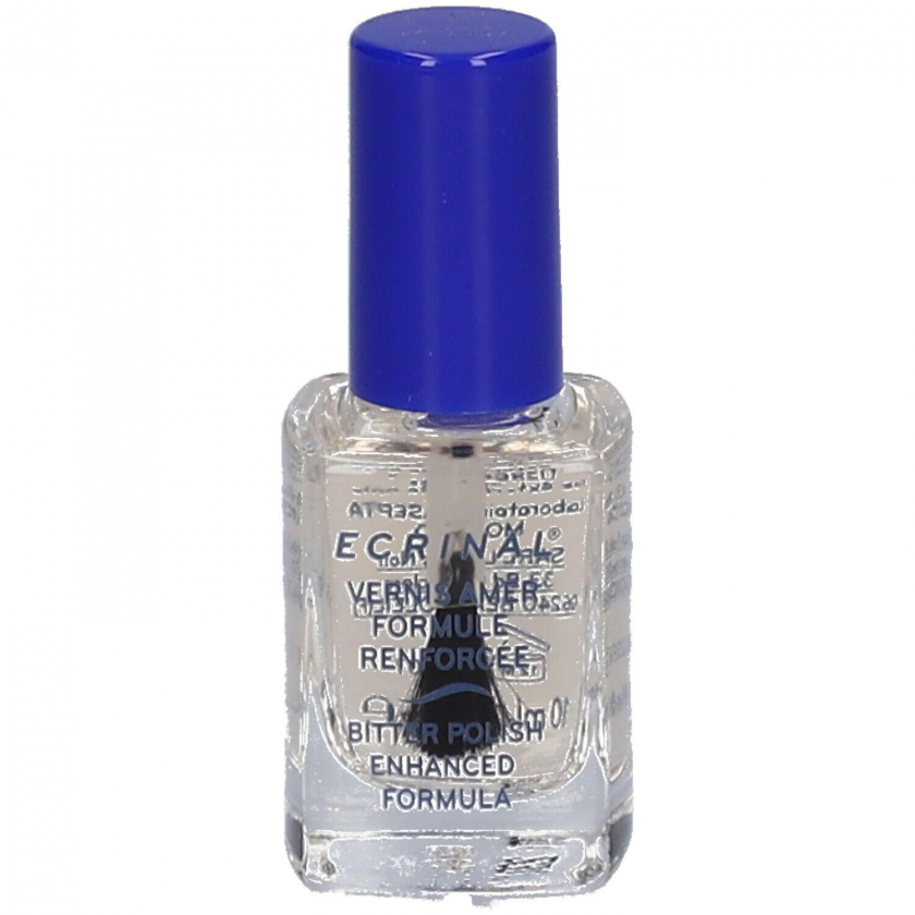 Горький лак ECRINAL® для предотвращения обкусывания ногтей и кутикулы. Прозрачный лак с экстремально горьким вкусом, который отучает от вредной привычки. Также способствует росту ногтей. Подходит для детей от 3 лет для отвыкания от сосания пальца. Содержит Bitrex® - самое горькое вещество в мире.
