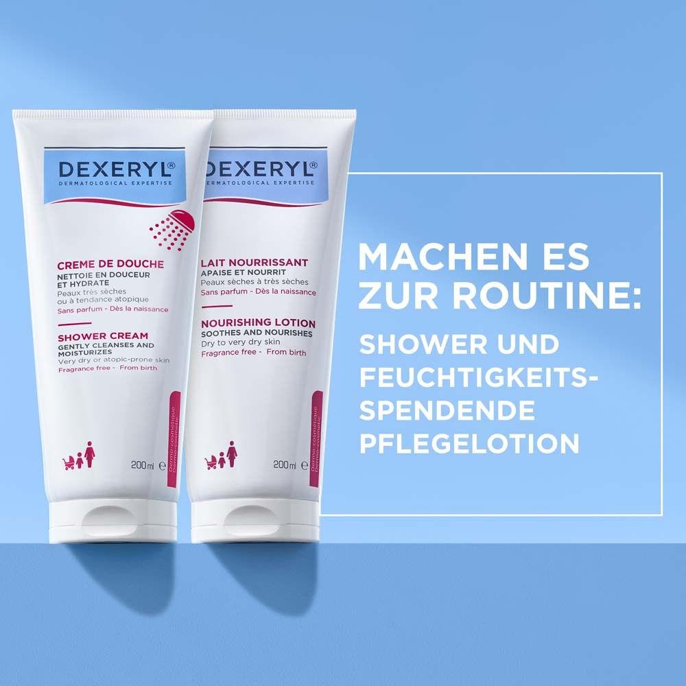 DEXERYL® Pflegelotion - богатая и быстро впитывающаяся лосьон для ухода за сухой и очень сухой кожей. Подходит для всей семьи, включая детей с рождения. Успокаивает, питает кожу до 24 часов, укрепляет естественный защитный барьер кожи. Без отдушек, хорошо переносится кожей.