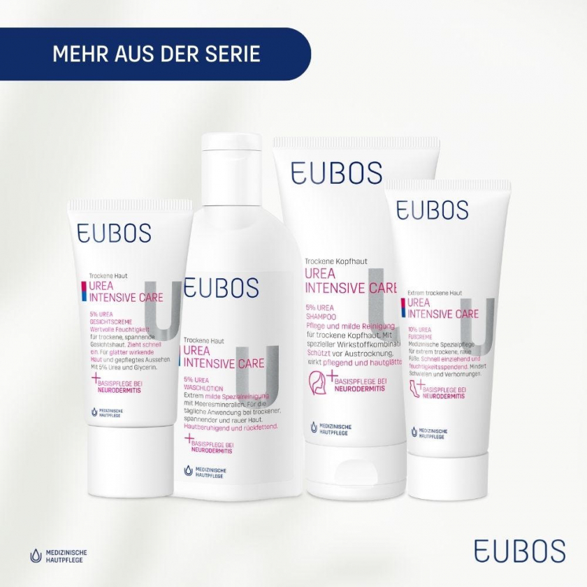 Медицинское средство по уходу за кожей EUBOS® Urea Intense Care предназначено для интенсивного ухода за очень сухой и шелушащейся кожей. Содержит мочевину (100 мг) и комплекс активных компонентов для глубокого увлажнения и восстановления кожного барьера.