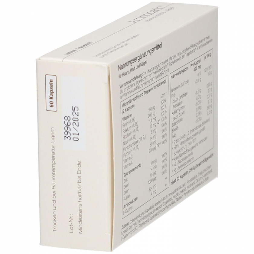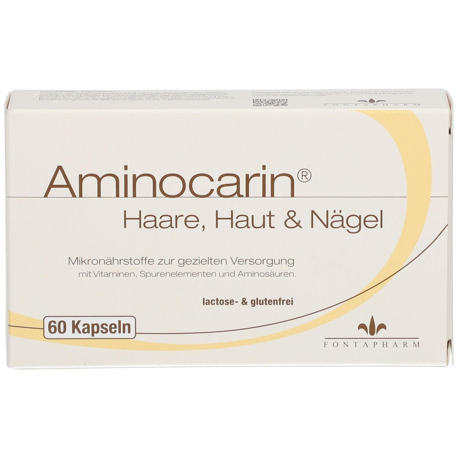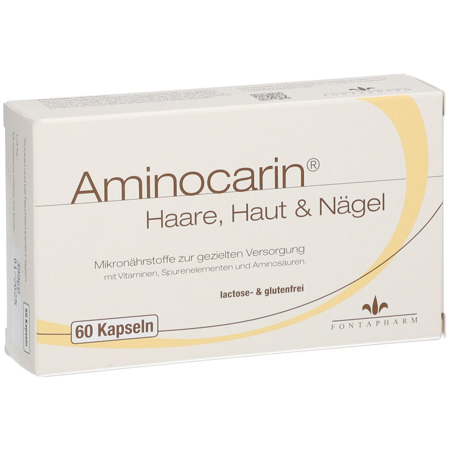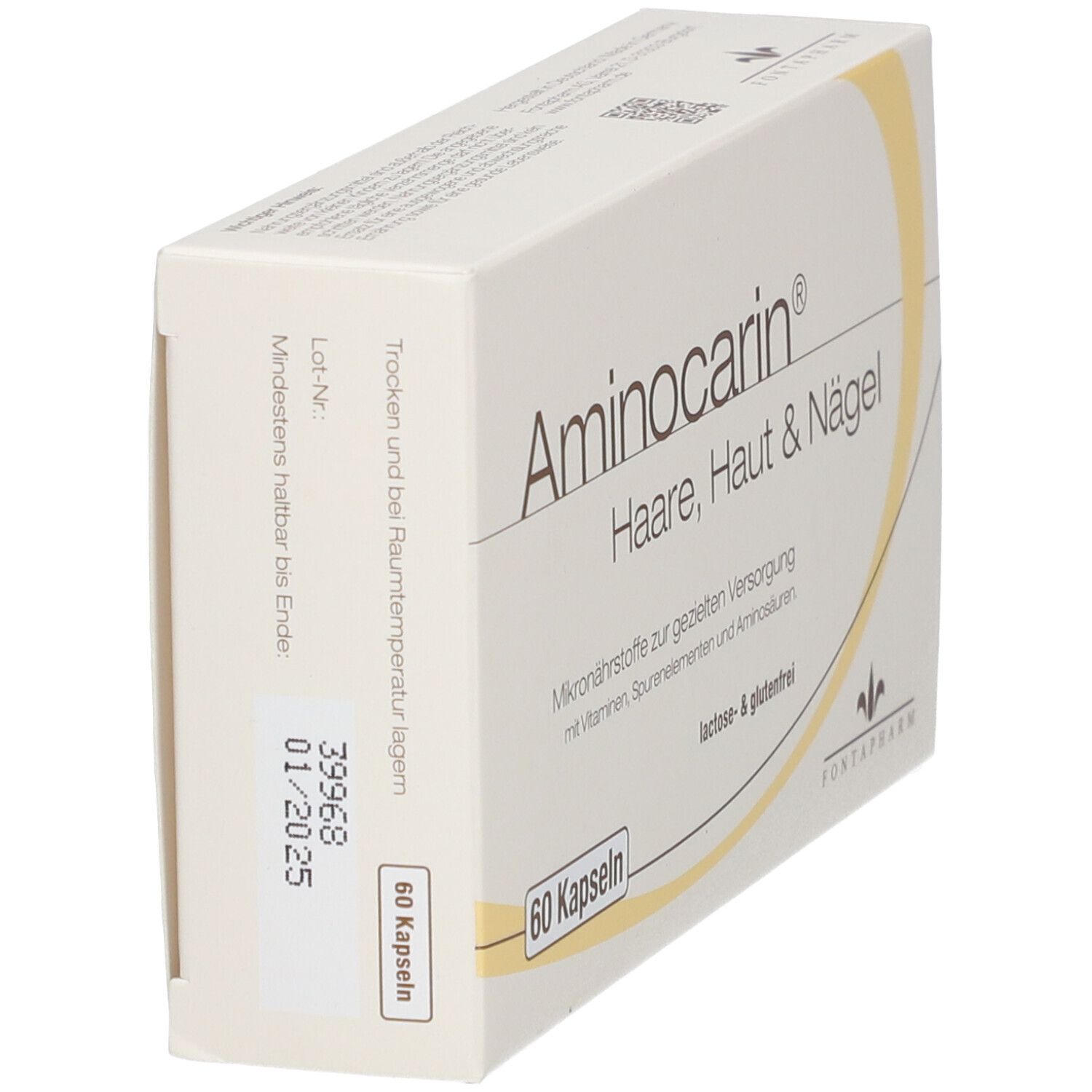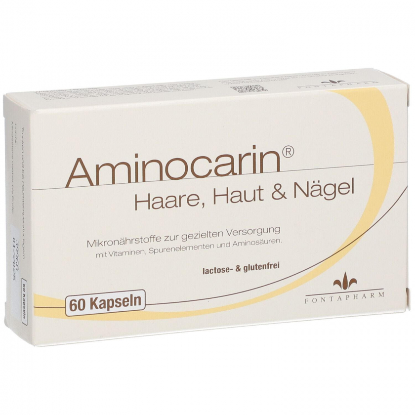 Пищевая добавка Aminocarin® в капсулах для улучшения состояния волос и ногтей. Содержит комплекс витаминов, минералов, аминокислот и коллагена. Подходит для людей с непереносимостью лактозы и глютена. Рекомендуется принимать по 2-3 капсулы в день перед едой курсом не менее 6 месяцев.