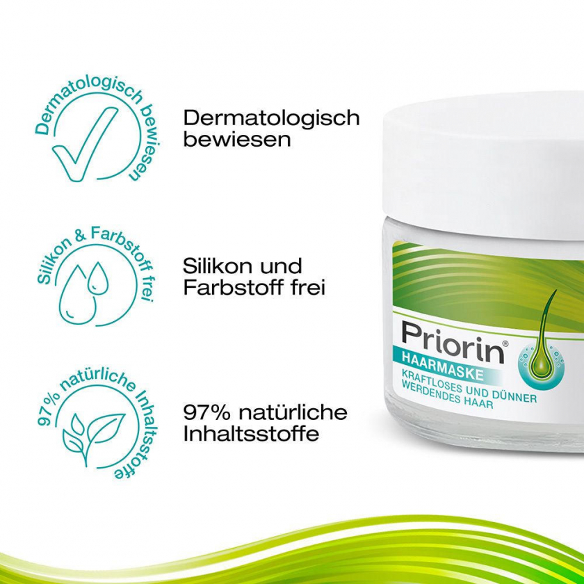 Priorin® Haarmaske - восстанавливающая маска для волос с активным комплексом Baicapil®. Укрепляет волосы от корней до кончиков, уменьшает выпадение и ломкость волос, придает объем и блеск. Идеально дополняет капсулы Priorin против выпадения волос.