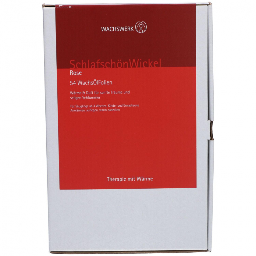SchlafschönWickel Rose - это тепловые ароматические обертывания с розовым маслом для улучшения сна и снятия беспокойства. Подходят для младенцев от 4 недель, детей и взрослых. Создают успокаивающую атмосферу, помогают при ночных страхах и беспокойном сне. В упаковке 54 одноразовых восково-масляных фольги размером 15x21 см.