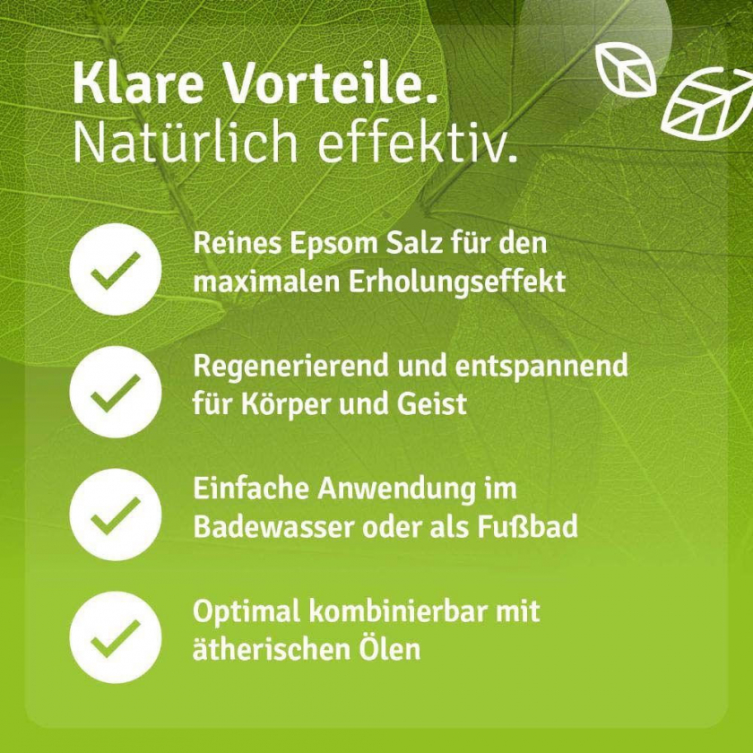 Расслабляющая ванна с натуральной магниевой эпсомовой солью для регенерации мышц и суставов. Идеально подходит для полных и ножных ванн. 1000 г в практичном повторно закрывающемся пакете. Только для наружного применения.