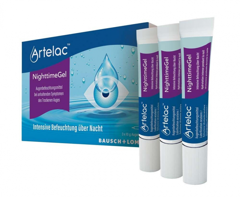 Artelac® Nighttime Gel - гель для интенсивного увлажнения глаз на ночь при синдроме сухого глаза. Обеспечивает длительное увлажнение роговицы и конъюнктивы, защищает поверхность глаза. Содержит карбомер и триглицериды средней цепи, подходит для ночного применения.