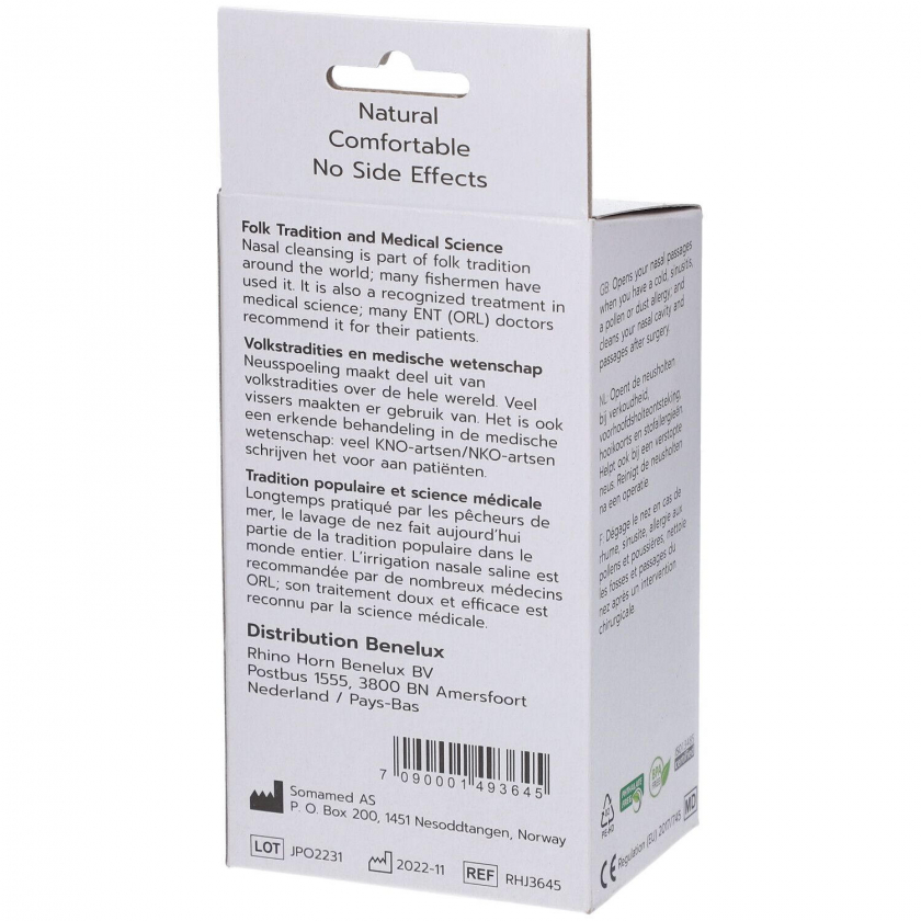 Способ применения: Промывание носа теплым солевым раствором с помощью специального устройства