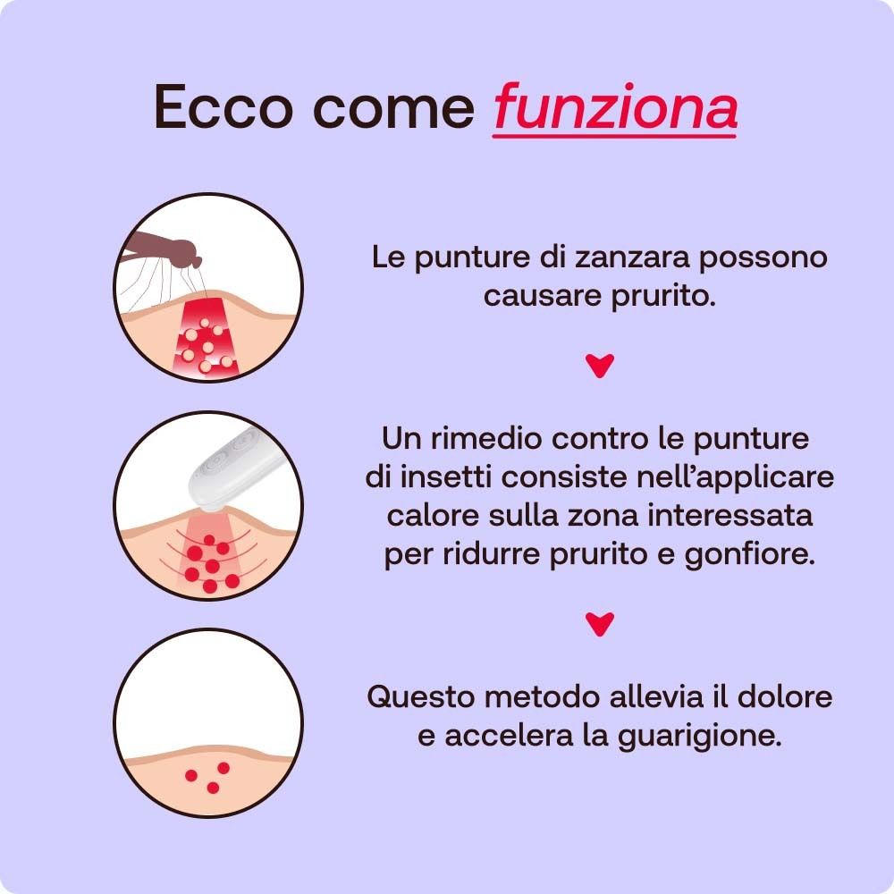 Redcare Insektenstichheiler - портативное устройство для быстрого облегчения зуда и боли после укусов насекомых с помощью целенаправленного теплового воздействия. Работает без химических добавок, имеет два режима температуры для разных типов кожи, идеально подходит для использования на природе и в поездках.