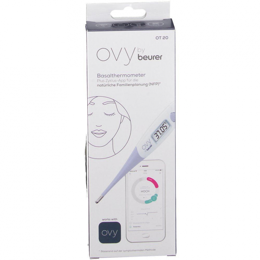 Базальный термометр Beurer OT 20 для точного измерения температуры тела с целью отслеживания менструального цикла и планирования беременности. Имеет гибкий наконечник, подходит для орального и вагинального использования, водонепроницаем, с точностью ±0,05°C. Совместим с приложением Ovy для анализа данных цикла.