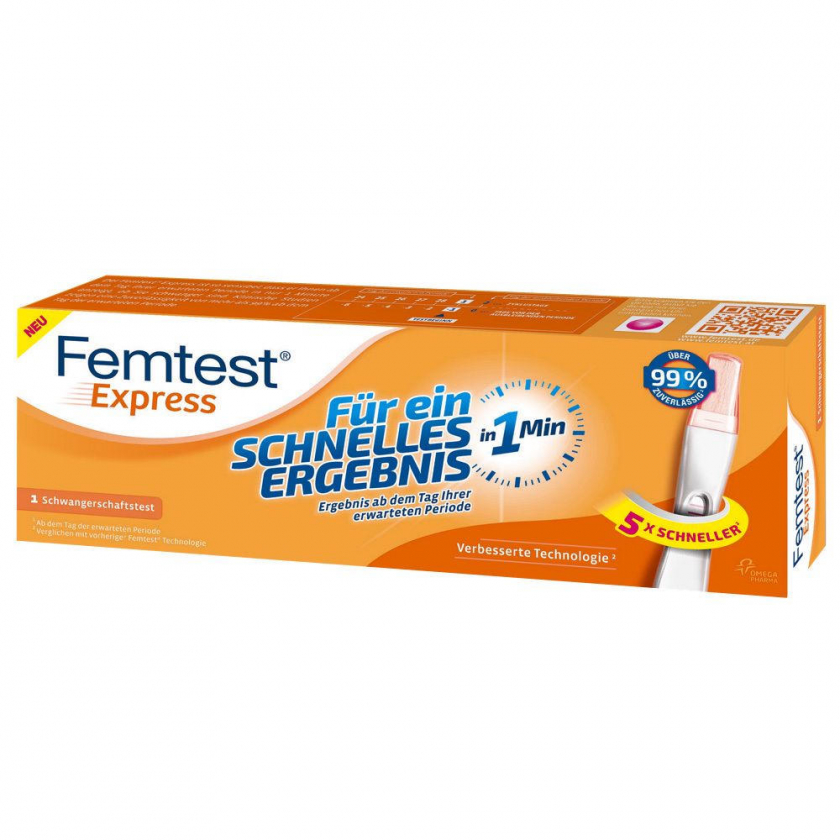 Домашний тест на беременность Femtest® Express для быстрого определения беременности с точностью свыше 99% с первого дня задержки менструации. Результат появляется в течение 1 минуты благодаря улучшенной технологии обнаружения гормона беременности.