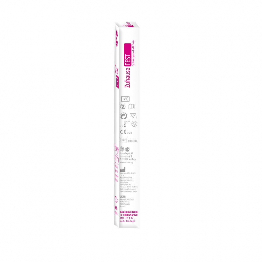 Ранний тест на беременность в форме палочки, который позволяет определить беременность за 6 дней до задержки менструации. Обнаруживает гормон ХГЧ с чувствительностью 10 мМЕ/мл. Включает тест-полоску и инструкцию по применению. Произведен в Германии.