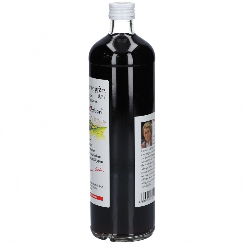 Травяной эликсир "Горькие шведские капли" Maria Treben® на основе экстрактов 11 целебных трав с содержанием алкоголя 32% vol. Используется как пищевая добавка для поддержания здоровья и пищеварения. Объем 700 мл.