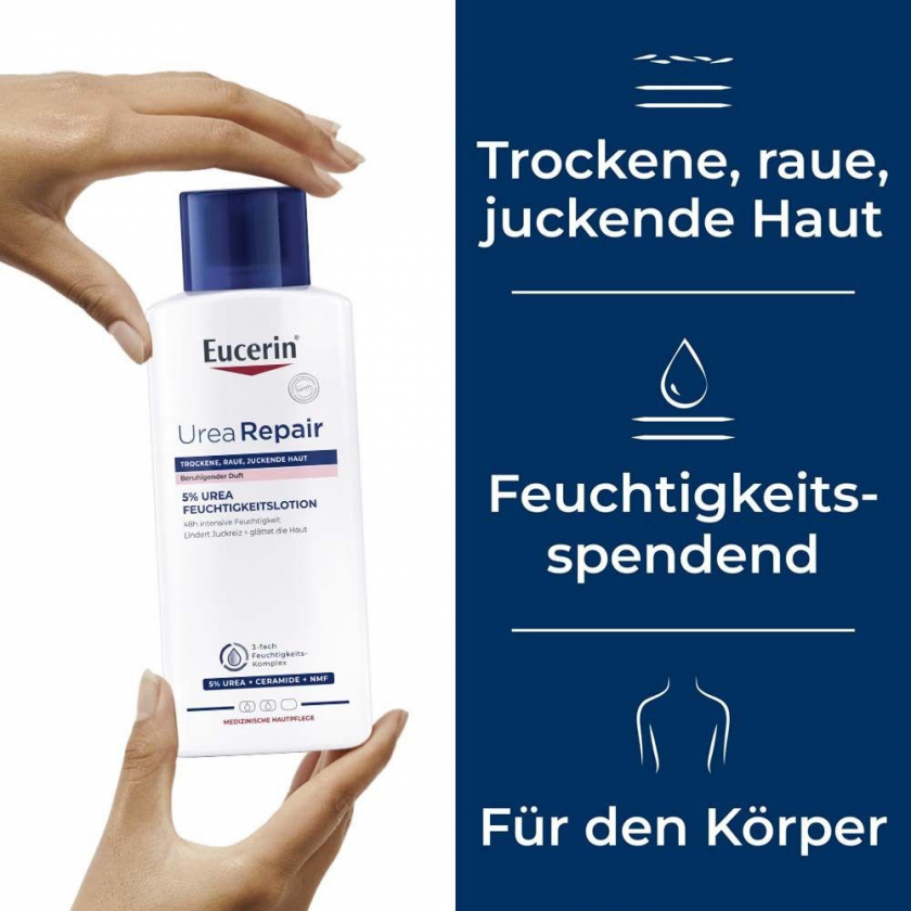 Eucerin® UreaRepair 5% Urea Feuchtigkeitslotion mit beruhigendem Duft – für raue, gespannte und sehr trockene Haut - Jetzt 20% sparen mit Code "eucerin20"