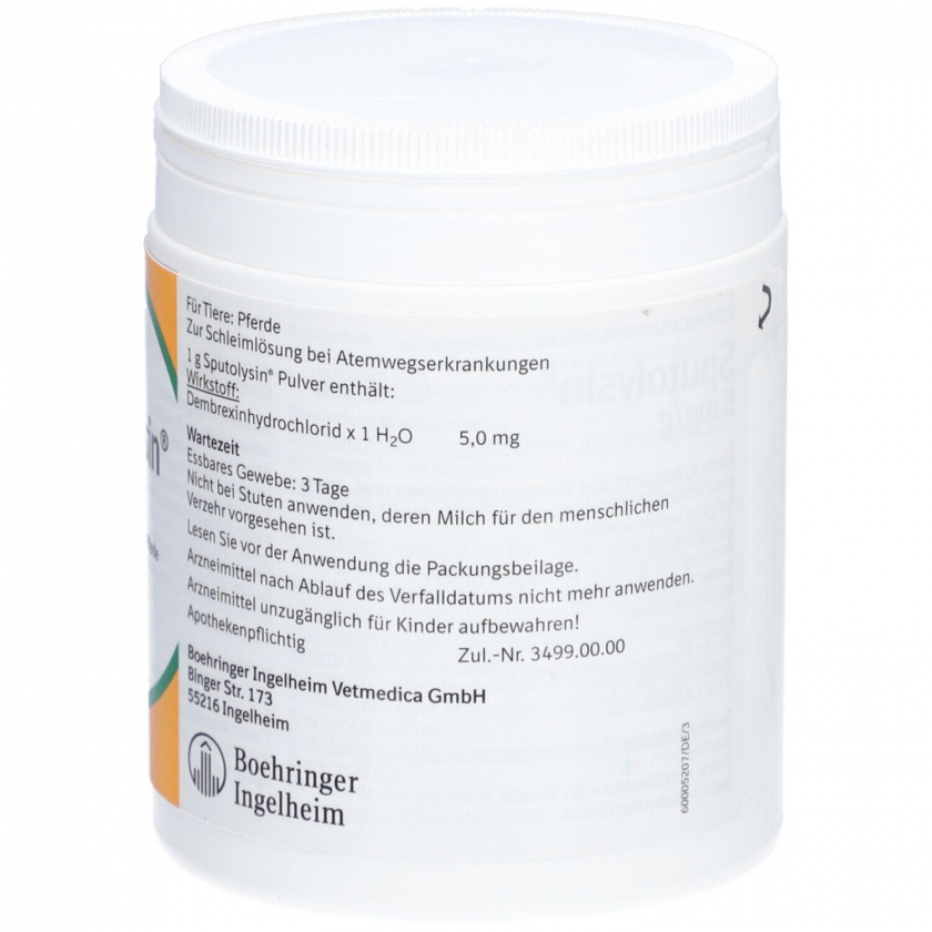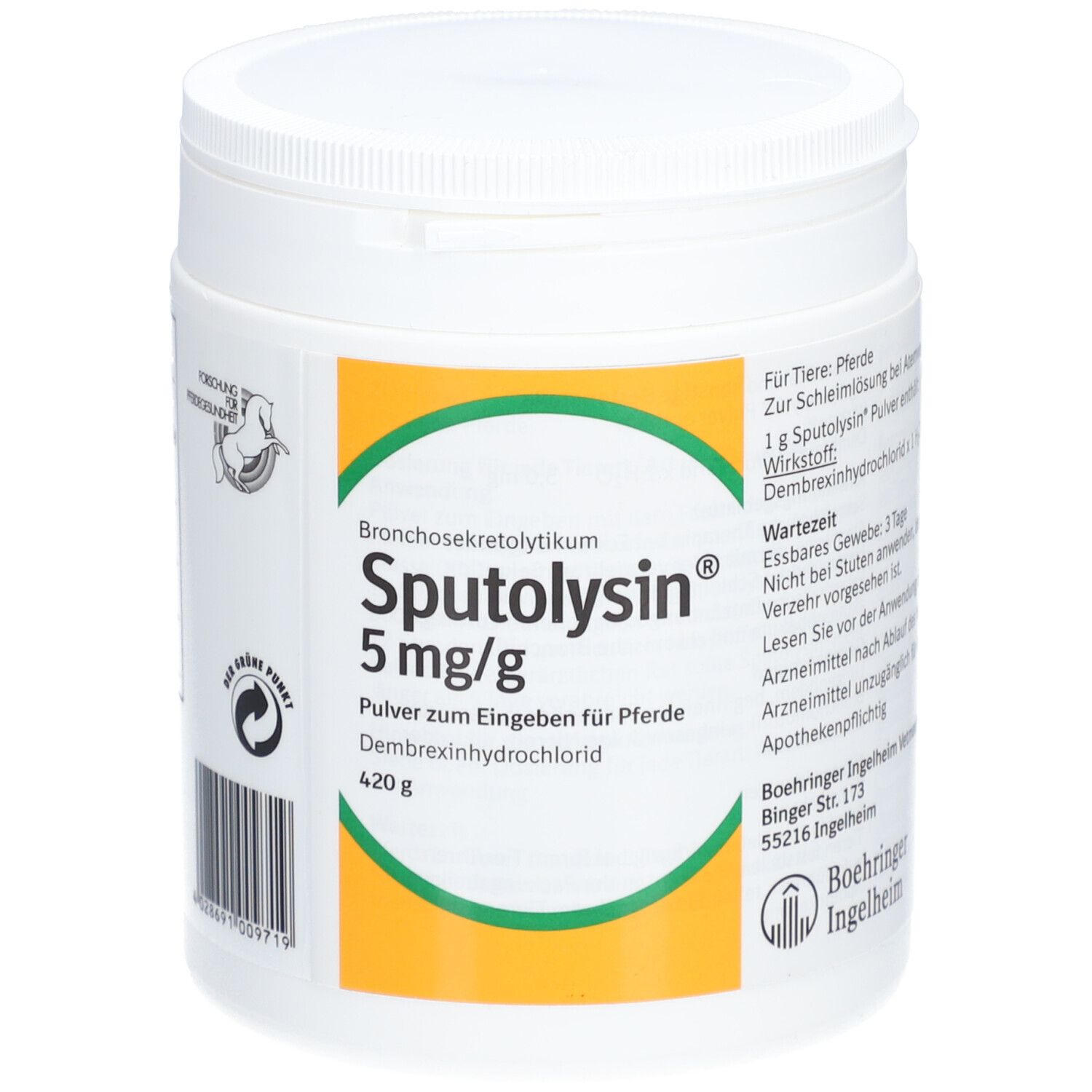 Sputolysin® 5 mg/g - ветеринарный препарат для лошадей, 4-кратно активный муколитик. Разжижает вязкую мокроту, облегчает транспорт секрета в дыхательных путях, модулирует сурфактантную систему в бронхах и альвеолах, повышает концентрацию антибиотиков в легких. Применяется при катаральных воспалениях верхних дыхательных путей, острых, подострых и хронических бронхитах.