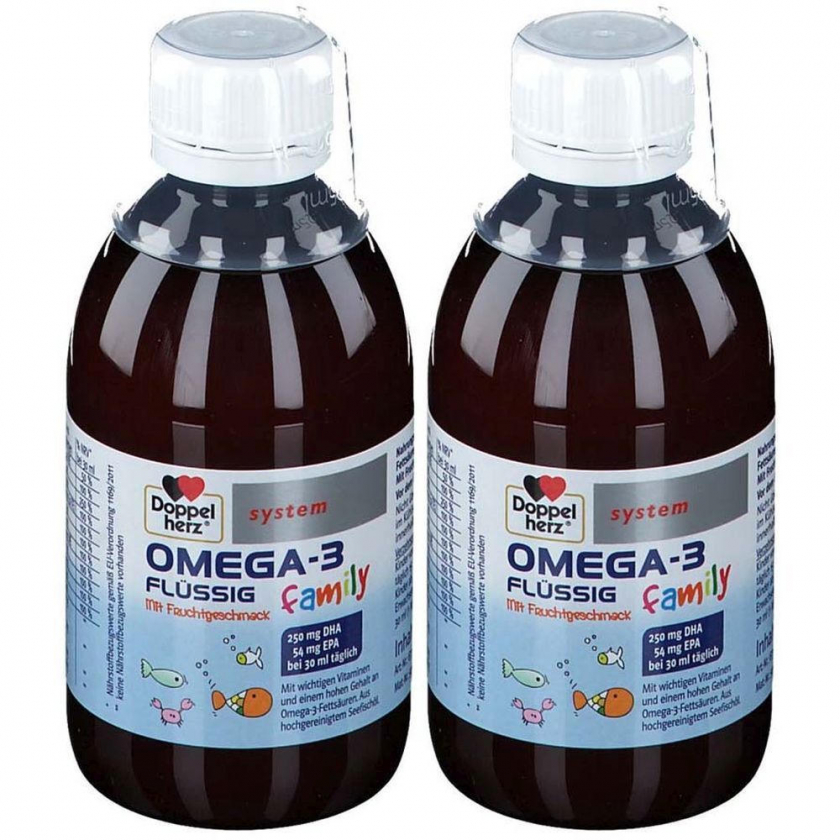 Жидкая пищевая добавка Doppelherz® system OMEGA-3 с высоким содержанием Омега-3 жирных кислот и витаминов A, C, D, B12 для поддержания нормальной функции мозга и иммунной системы. Подходит для всей семьи, имеет фруктовый вкус, готов к употреблению.