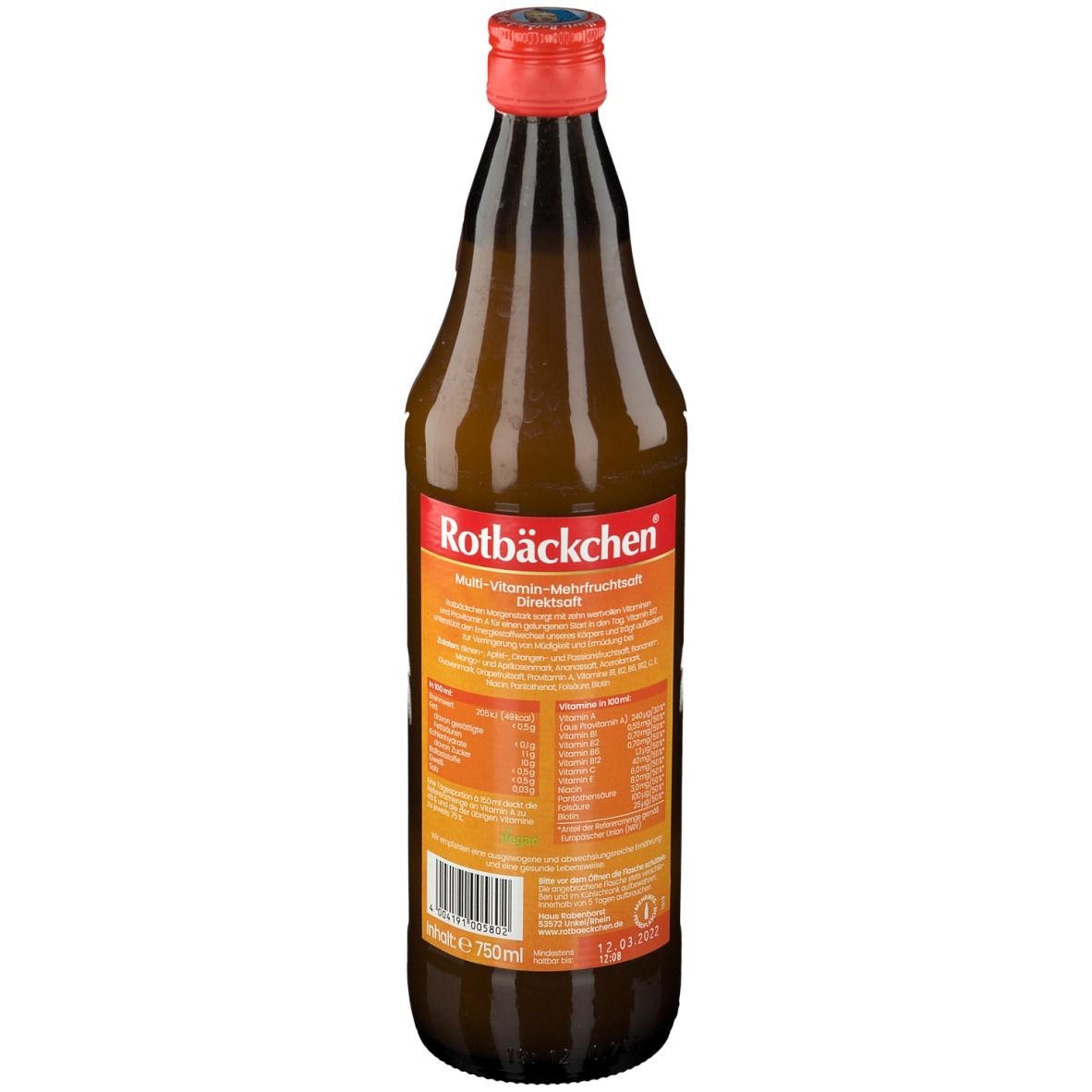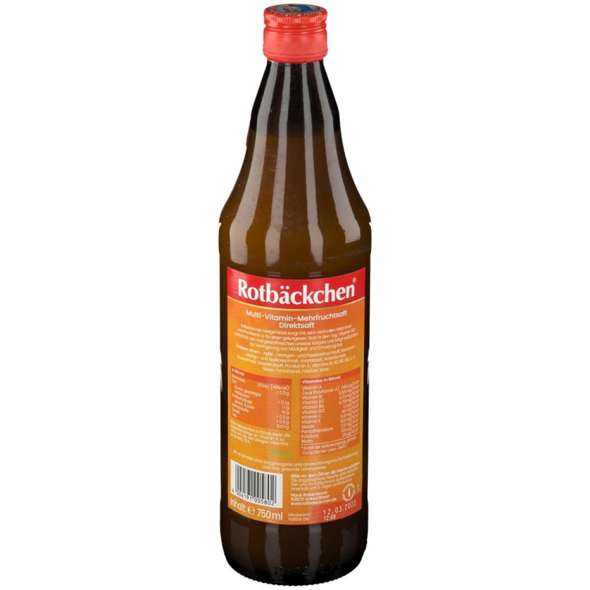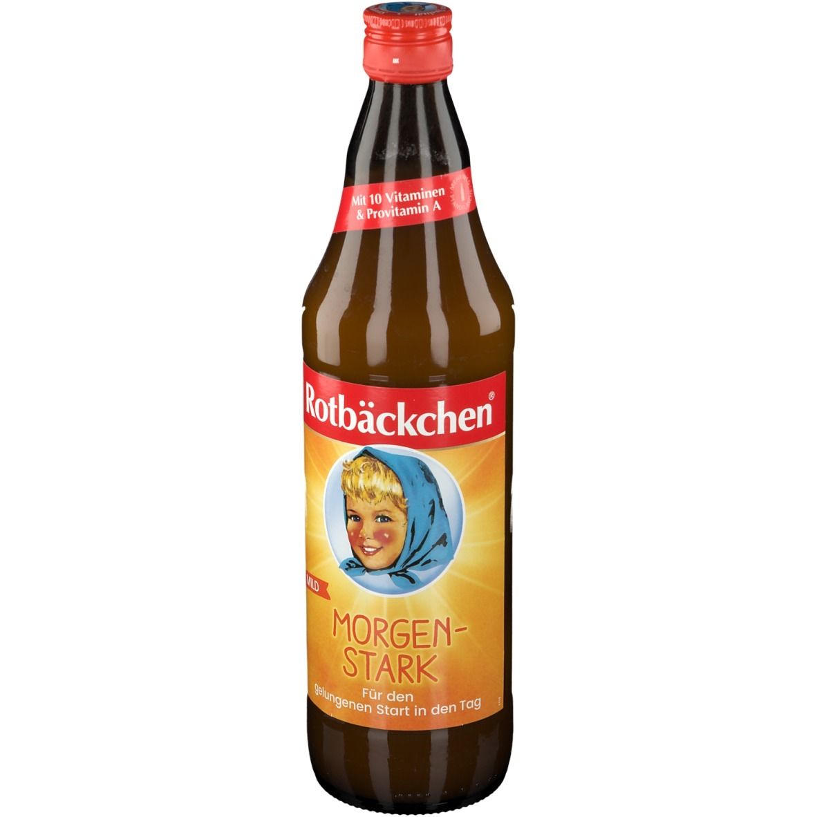 Мультивитаминный мультифруктовый сок Rotbäckchen Morgenstark с 10 витаминами и провитамином А для поддержки энергетического обмена и уменьшения усталости. Изготовлен из прямых соков без концентратов, подходит для веганского питания. Объем 750 мл.